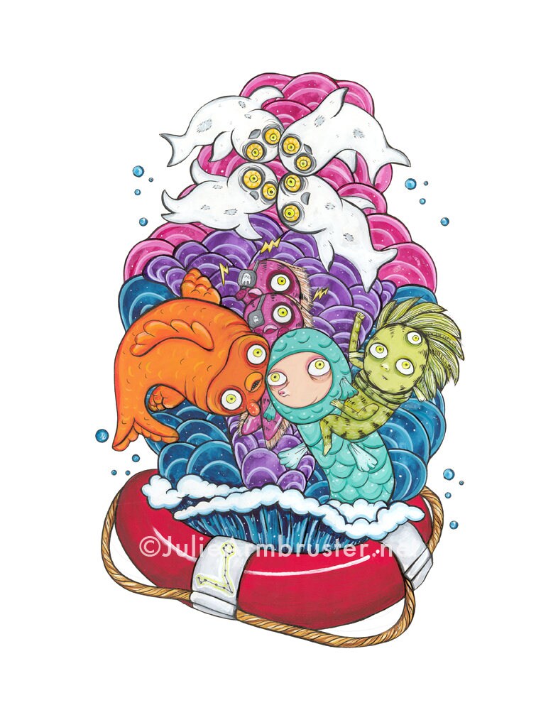 Beginning with a print of the circles/stars in the 12 zodiac configurations, I converted the stars into eyeballs. I then constructed the creatures and environments around the eyeballs. The original figures were used to tell stories and explain that which was unexplainable. My characters will do the same thing.