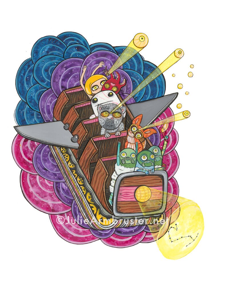 Beginning with a print of the circles/stars in the 12 zodiac configurations, I converted the stars into eyeballs. I then constructed the creatures and environments around the eyeballs. The original figures were used to tell stories and explain that which was unexplainable. My characters will do the same thing.