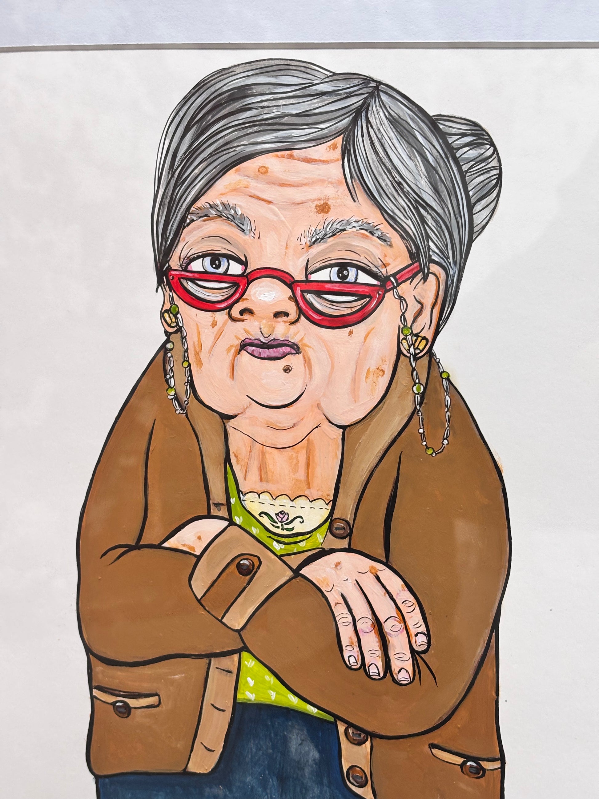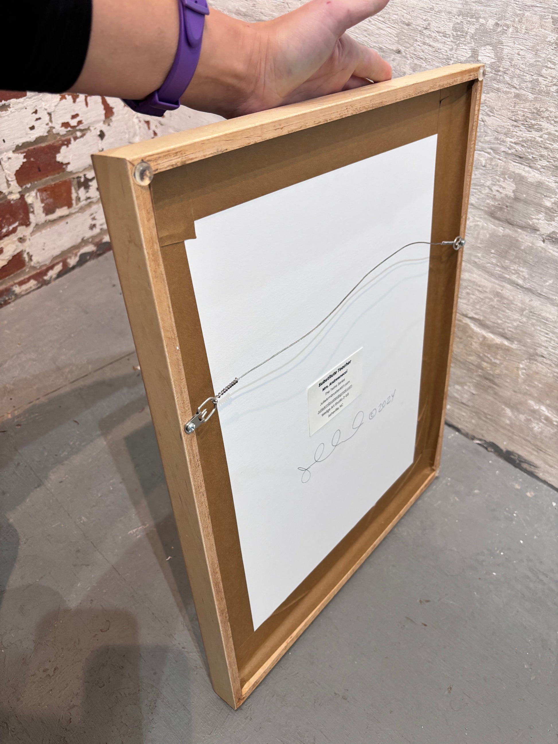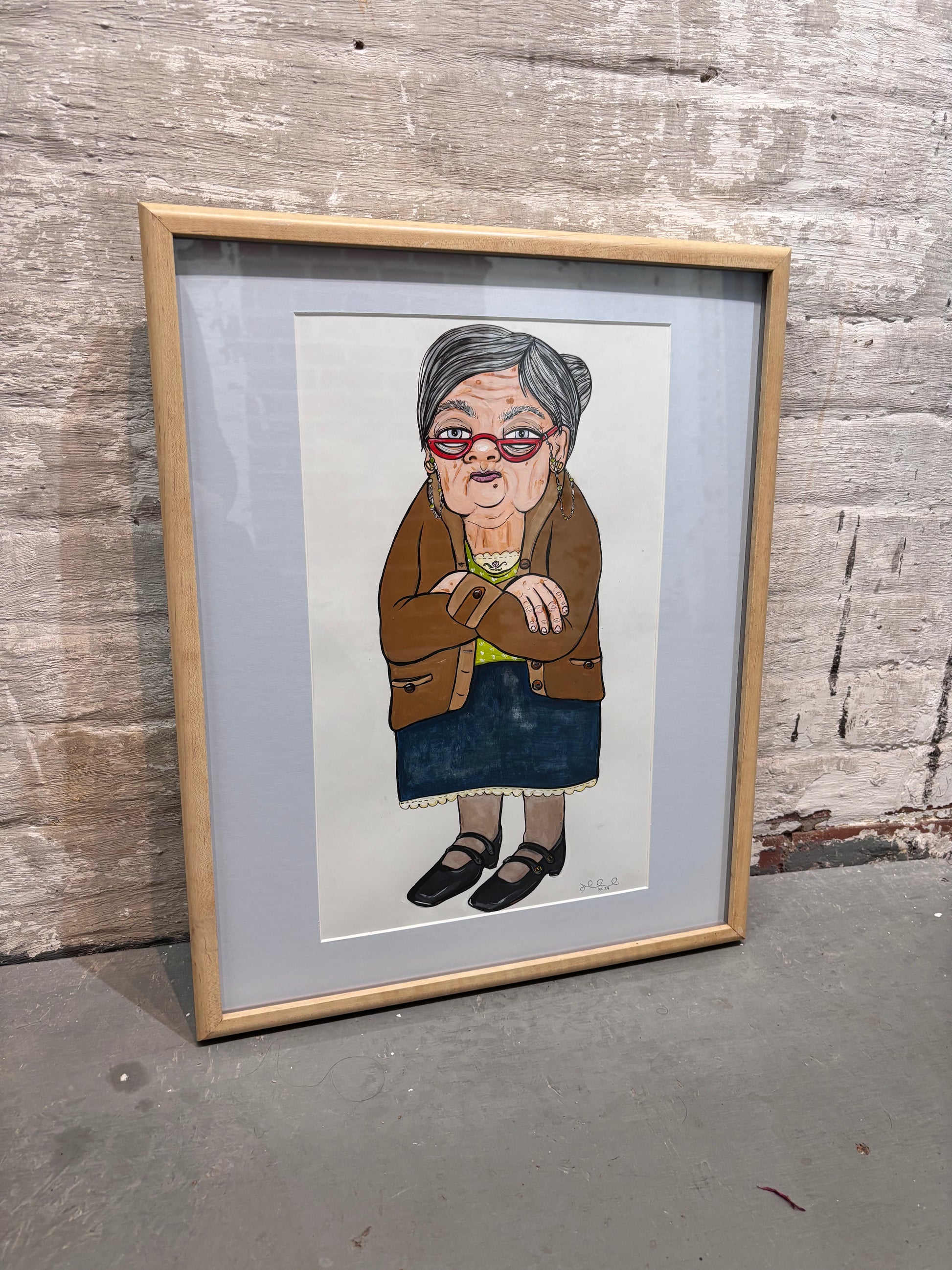 Original acrylic and ink painting on paper with custom mat and solid wood frame. 17x21 inches framed