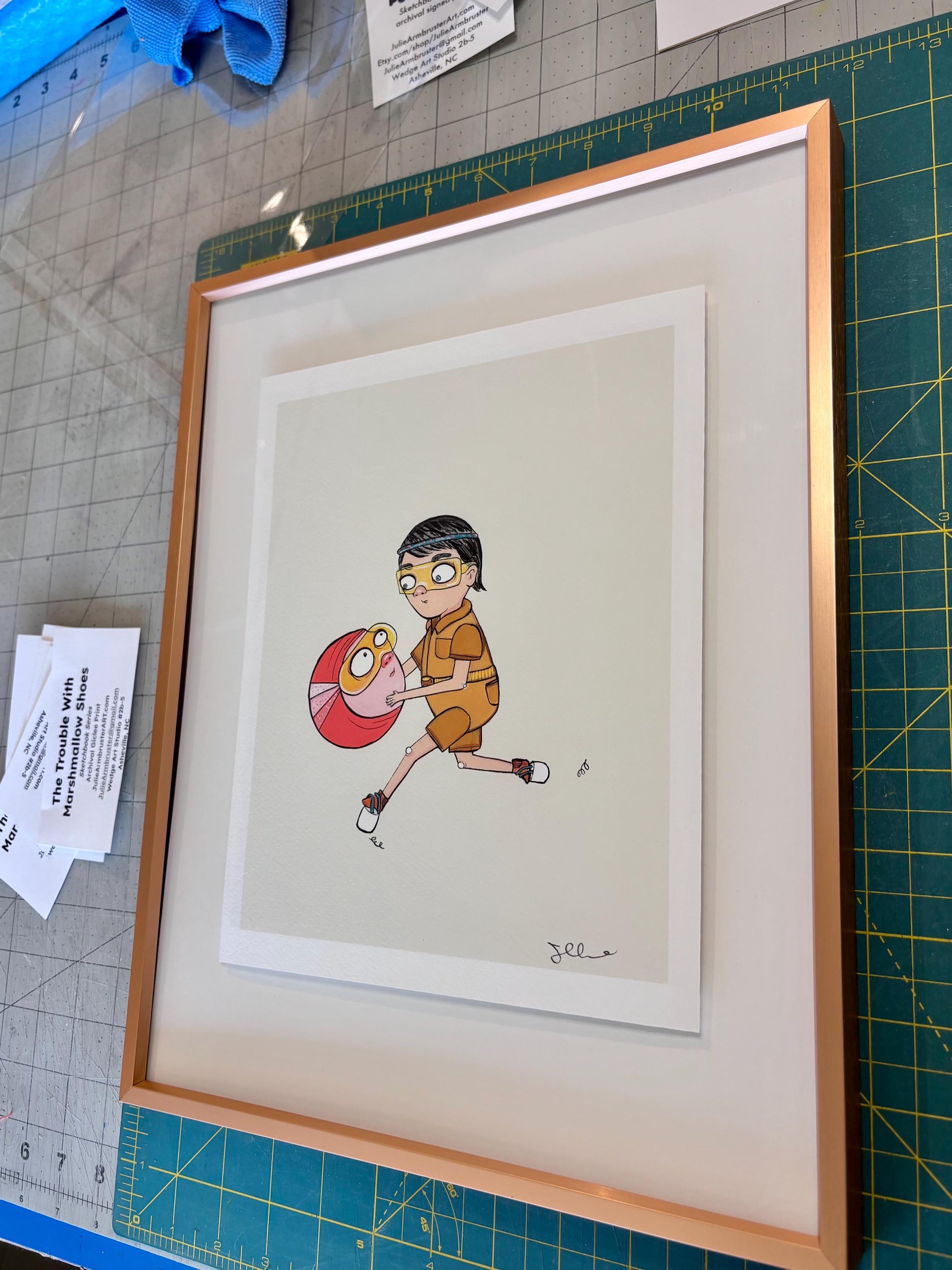 From the “ sketchbook series” this floating archival print is signed and comes ready to hang in a lovely gallery style rose gold metal frame.