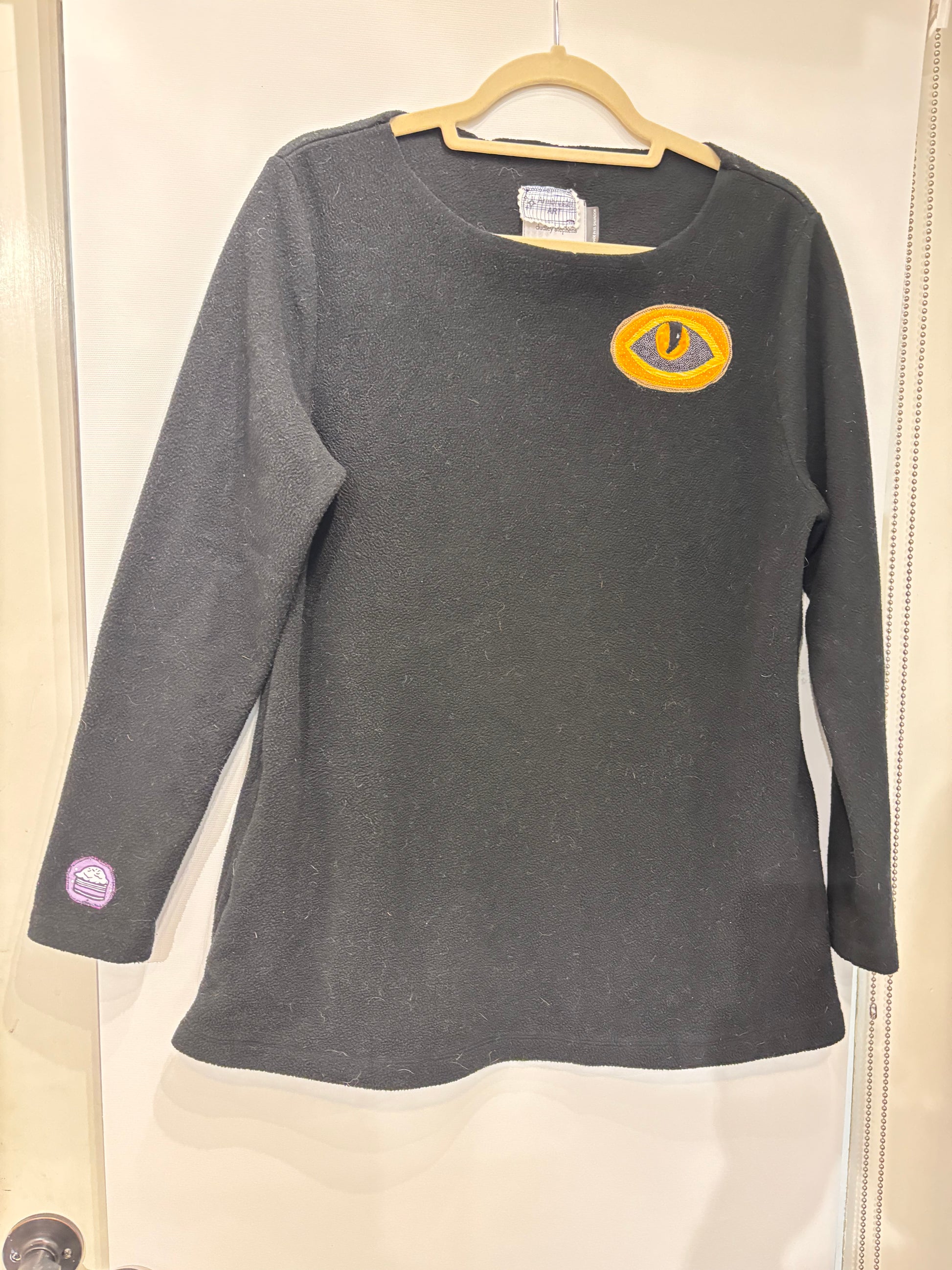 Wampus eye on black fleece tunic size large with tiny ice cream cup