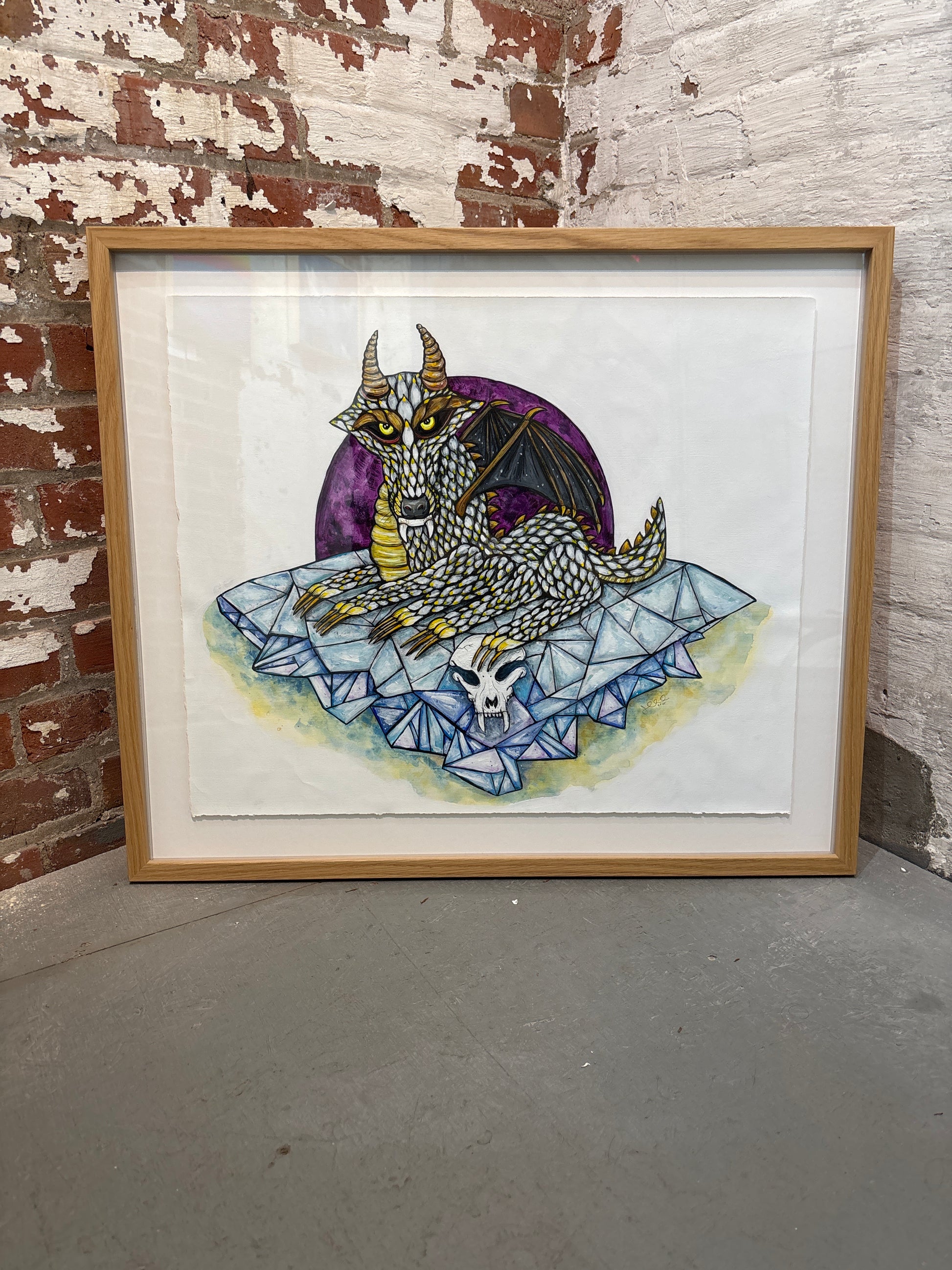 Original acrylic and ink painting on paper with custom float, archival mat and solid wood frame. 29x24.5 inches framed.